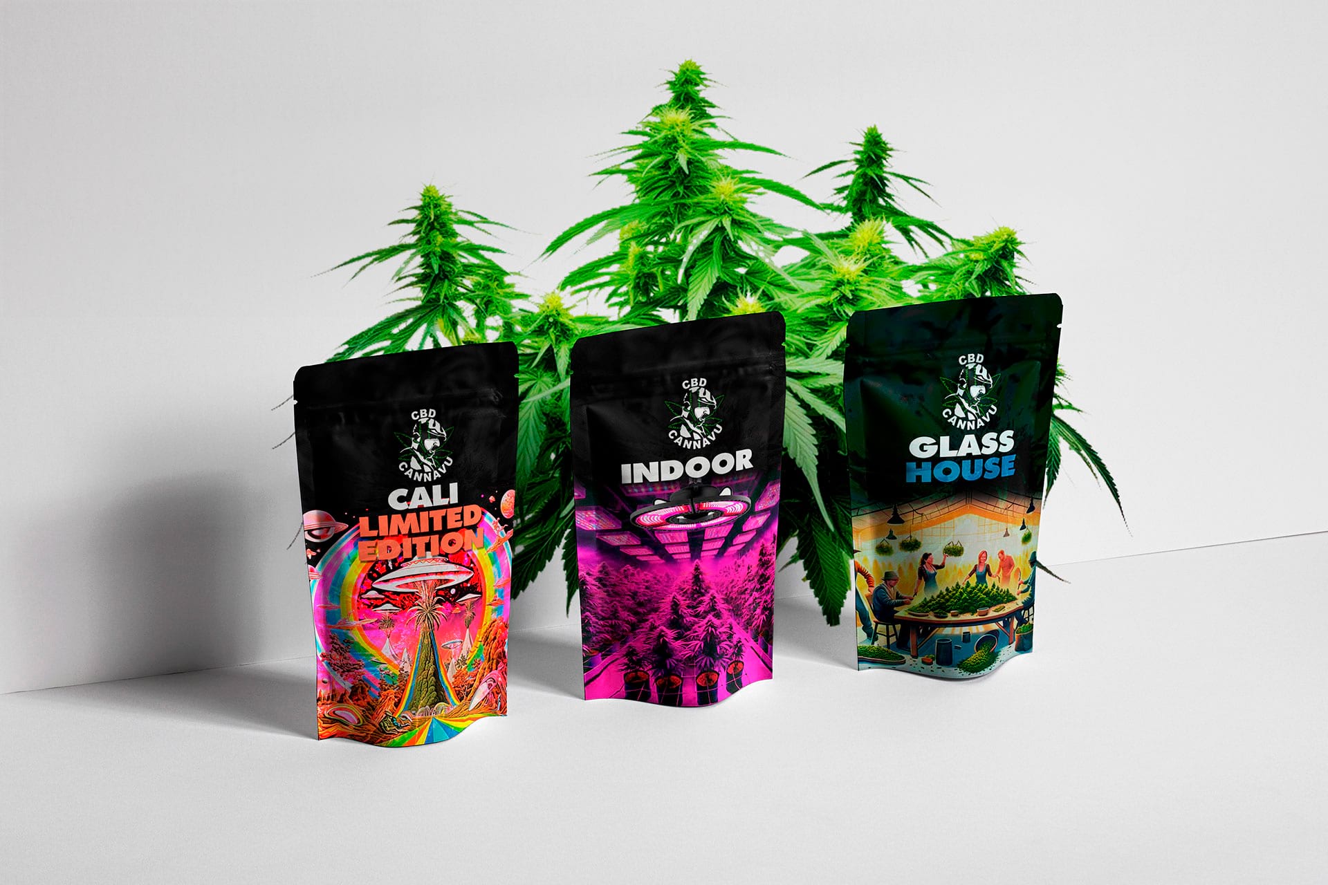 A key part of the project included the design of exhibition stands for international trade fairs — such as Spannabis Bilbao — where the brand needed a strong visual presence capable of attracting professional visitors and communicating product quality at first glance.